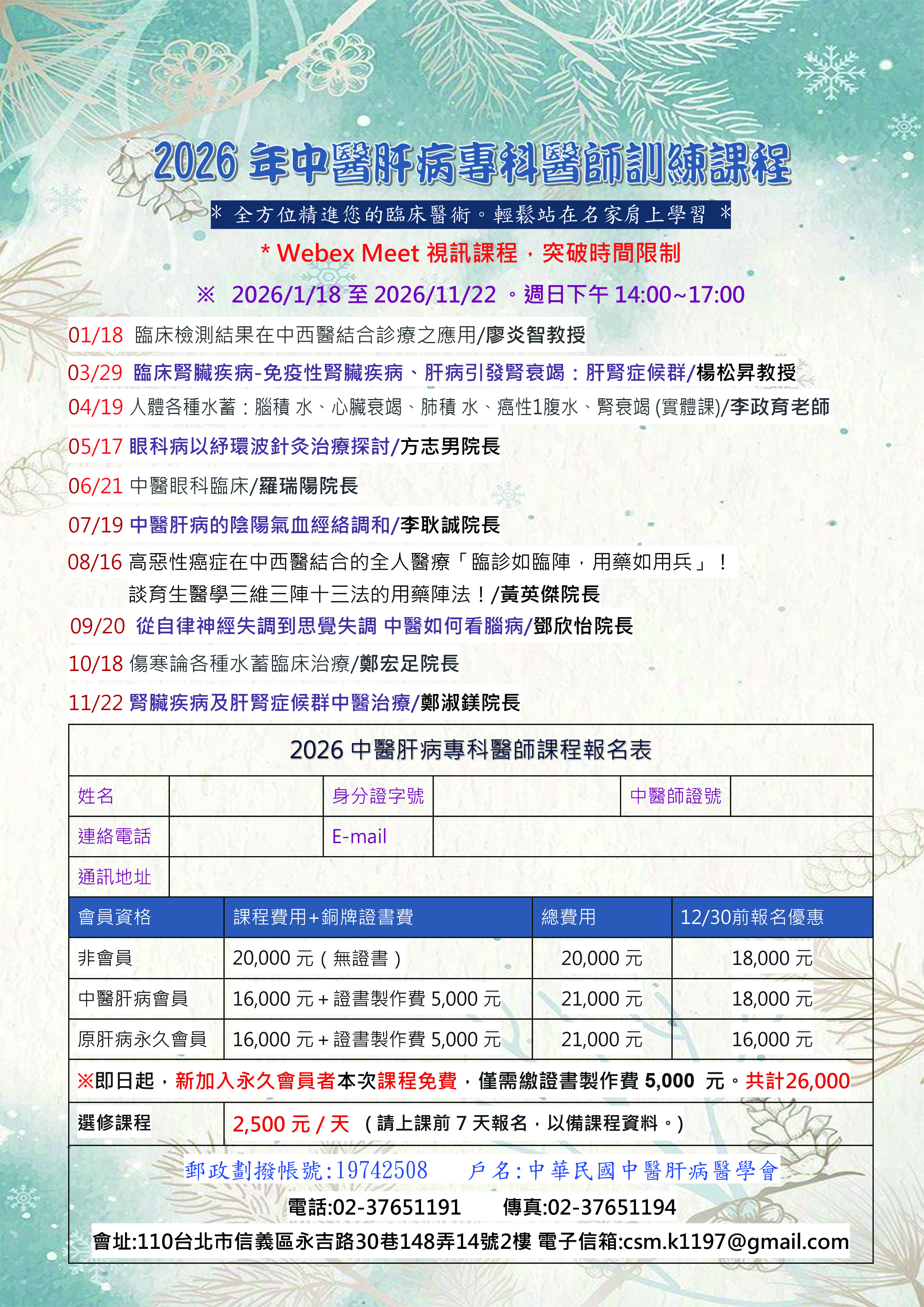 111年度中醫經方經驗傳承學術研討會暨中醫肝病、癌症醫學會會員大會